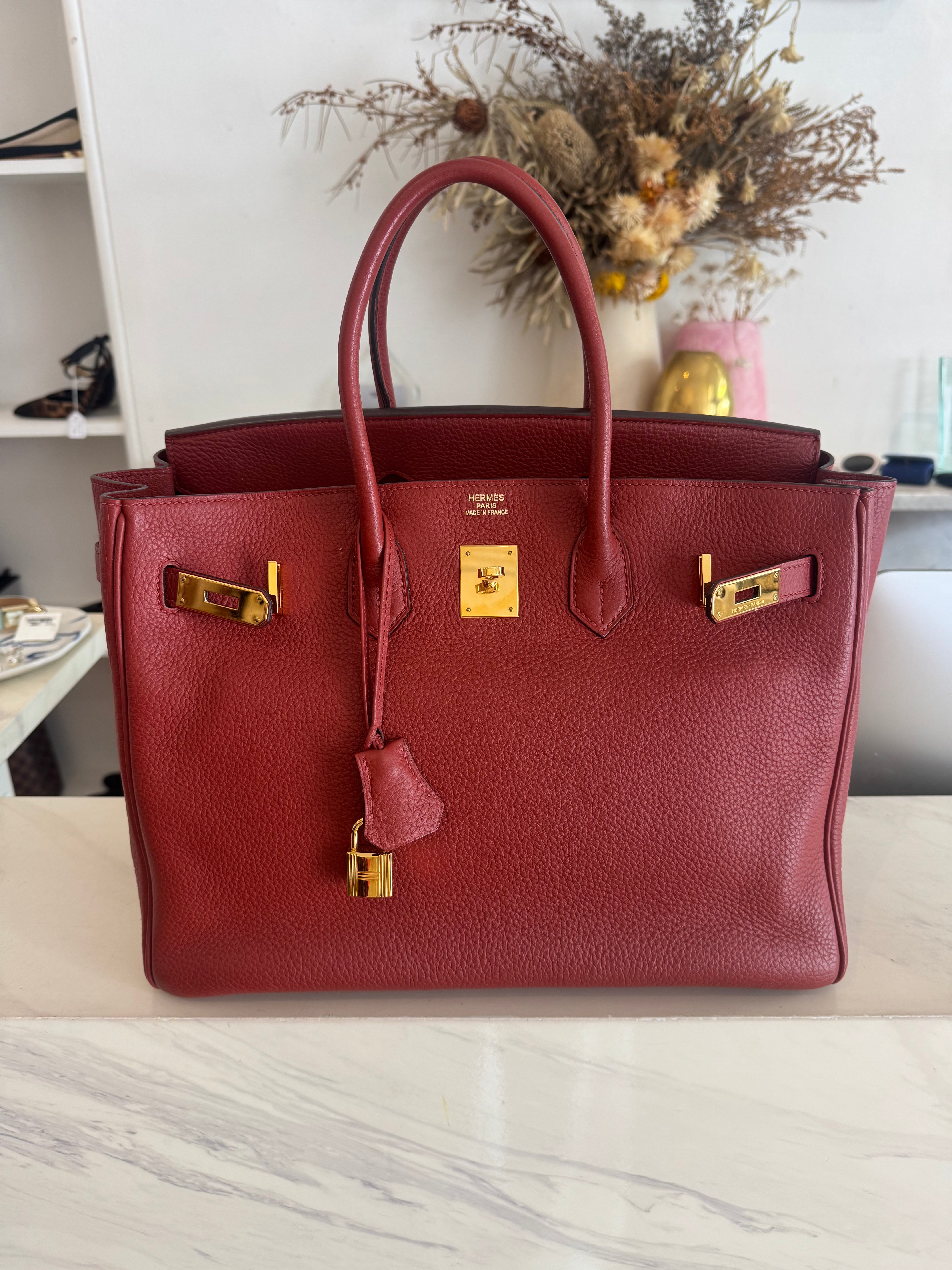 Hermes Birkin 35 Clemence Brique Gold Hardware Bag