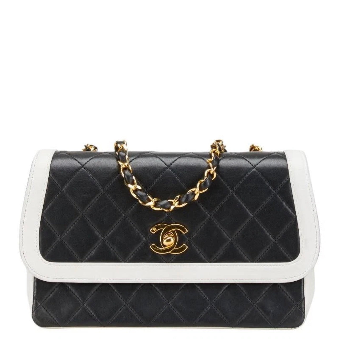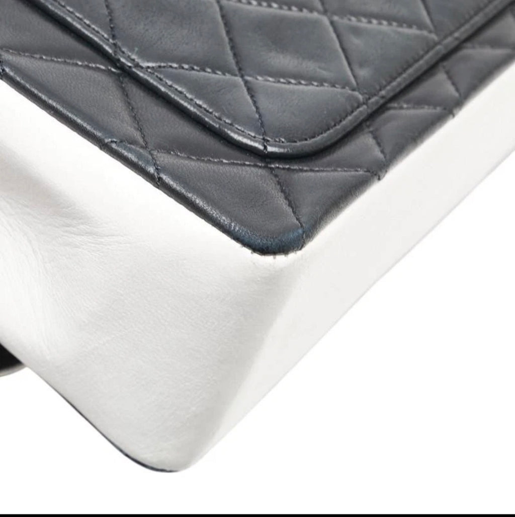Chanel Coco Mark Matelasse Chain Shoulder Bag Black White Lambskin
